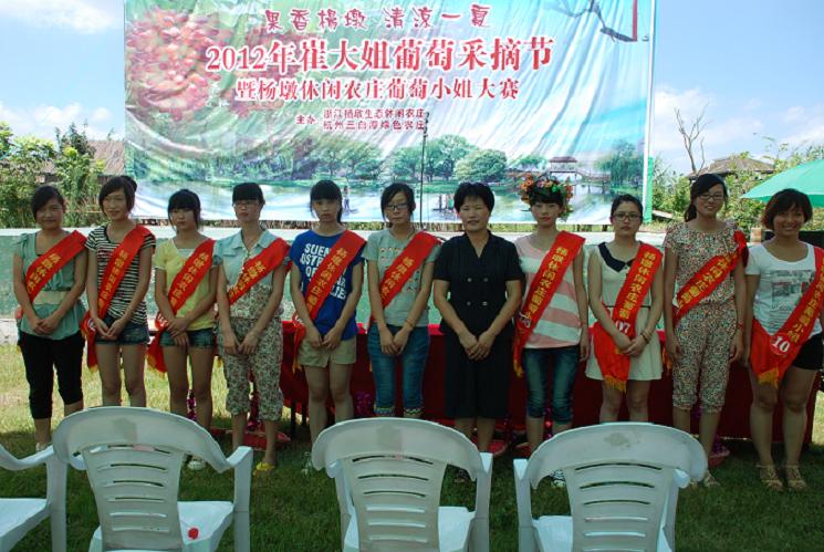 今年7月22日,第六届崔大姐葡萄采摘节如期开幕,农业局局长胡雪荣、旅游局副局长简芳佳、副镇长曹娅芬、杨墩村王建荣书记、宋荣坤主任到场担任“葡萄小姐”评委。